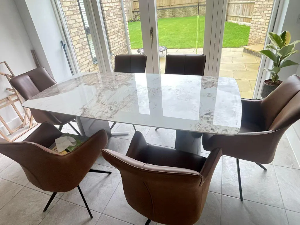 Usually 120cm / 140cm fits 4-6 people, 160cm / 180cm for 6-8 people, 200cm / 220cm table for 8-10 people, 240cm for 10-12 people.