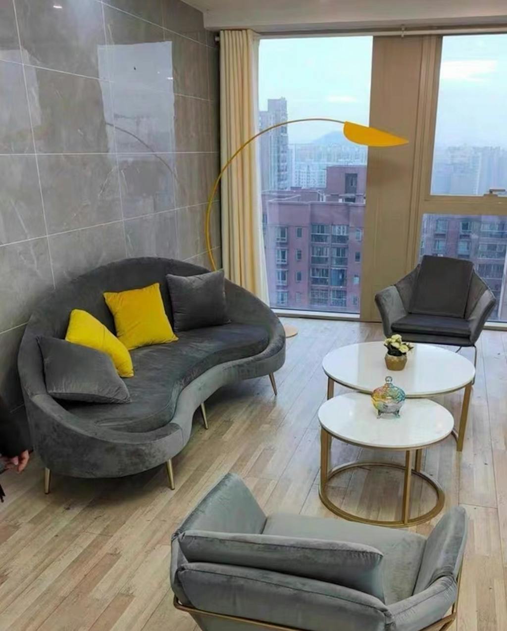 | Product name | Slender Modern Curved Three Seater Sofa |
